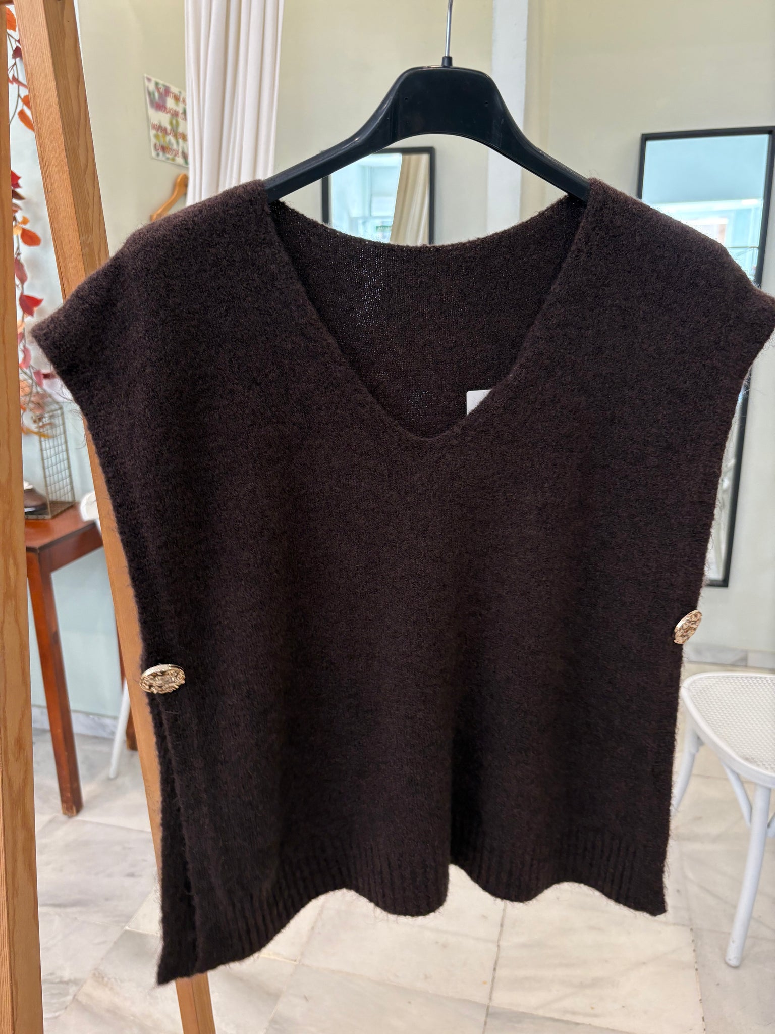 Chaleco marrón chocolate detalle
